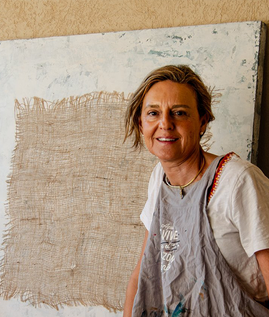 María Zavala es una artista visual que explora la pintura a través de técnicas y materiales de gran riqueza plástica. Su obra destaca por una cualidad táctil que invita a disfrutar con los sentidos, presentando abstracciones que evocan muros donde se insertan formas geométricas y arquitectónicas. En su trabajo, la delicadeza convive en un contraste armónico con la firmeza y rotundidad de la materia, logrando narraciones sugerentes que provocan al espectador con apenas unos pocos elementos.